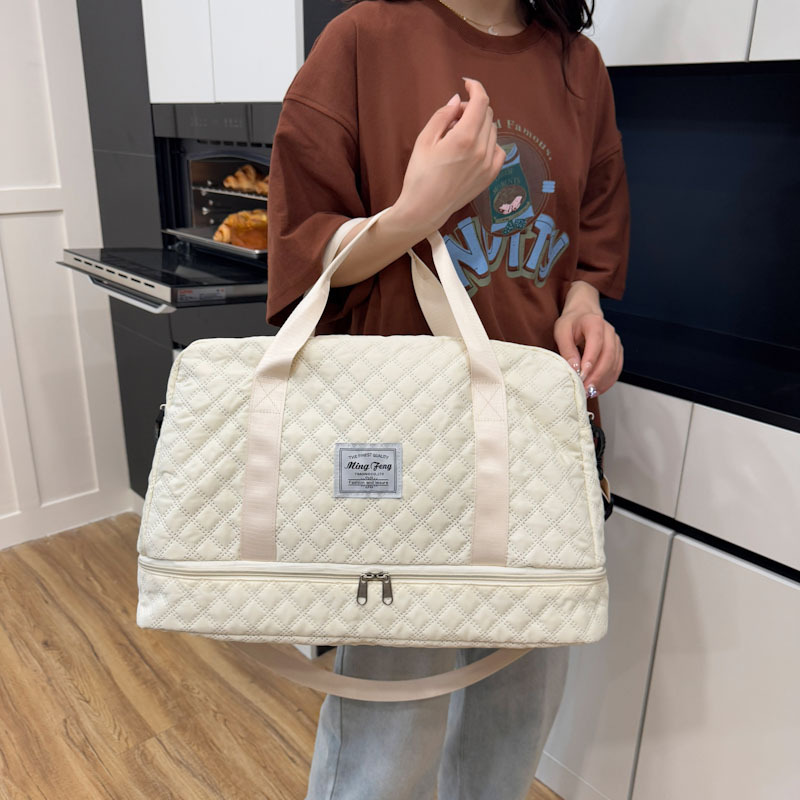 旅行包大容量菱格独立鞋仓短途行李收纳包瑜伽运动健身包百搭轻便