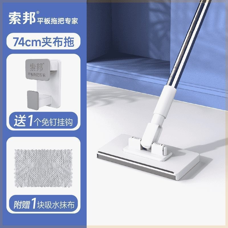 -               洗脸巾拖把免手洗懒人拖地干湿两用大号家用夹布款自动夹抹布