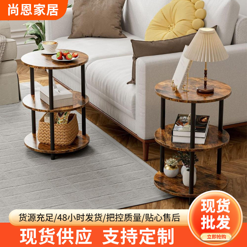 客厅边几置物架三层实木色家用阳台小茶桌置地式多层收纳置物架