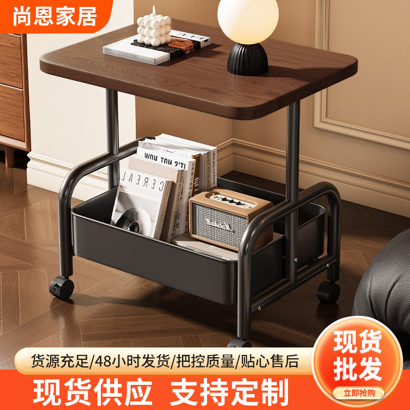 双层小推车边几实木色桌板大收纳槽带滚轮可移动客厅小推车置物架