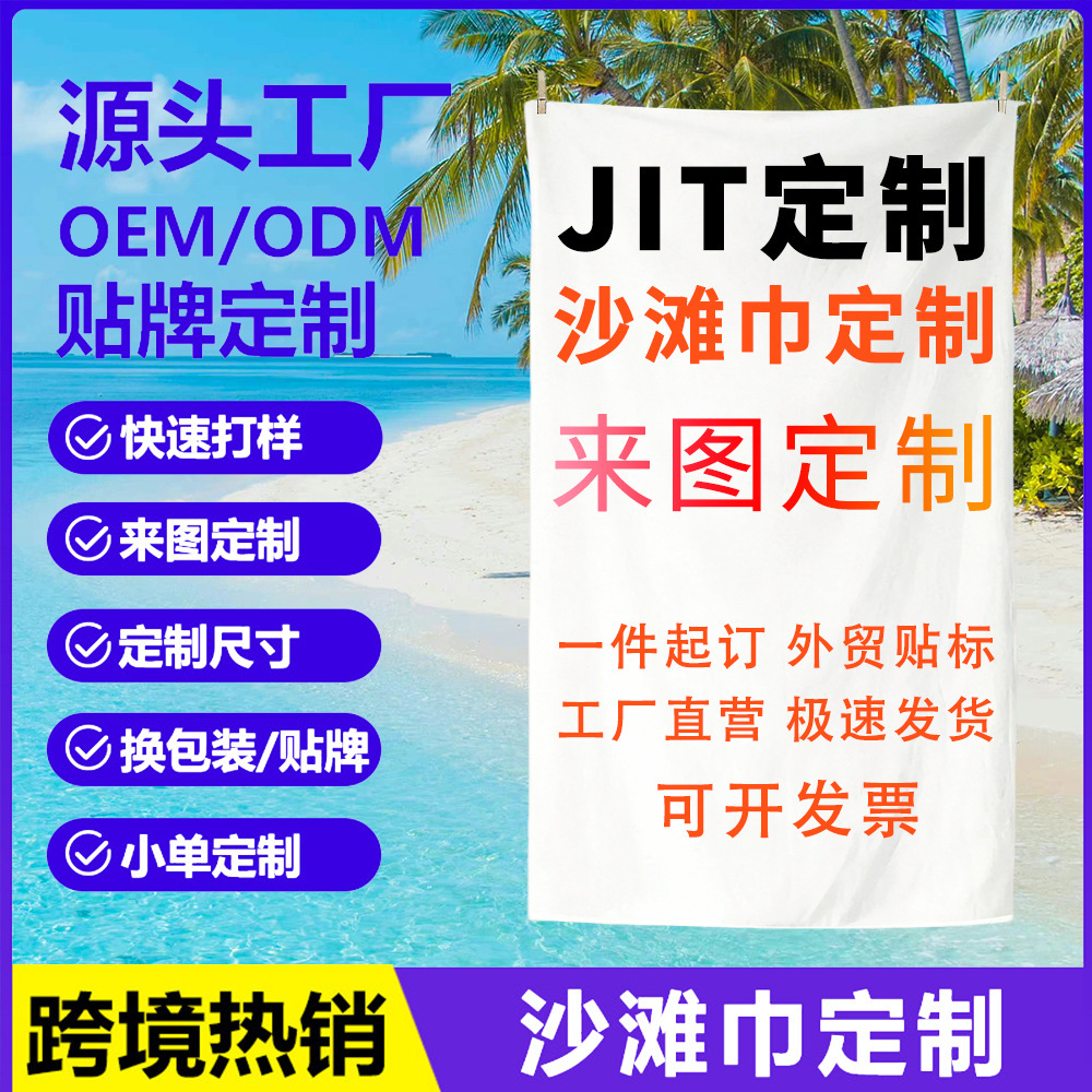外贸跨境超细纤维沙滩巾定制数码印花LOGO速干a类浴巾加毛巾批发
