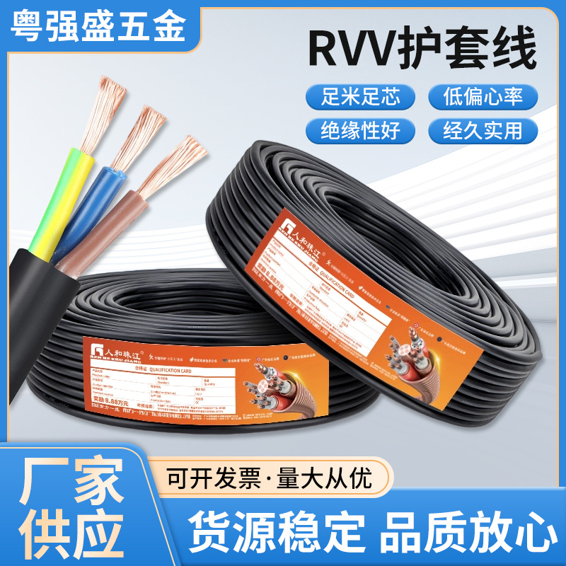 珠江RVV护套线2/3/4/5芯1.5 2.5 4 6平方三相电缆监控铜芯材质