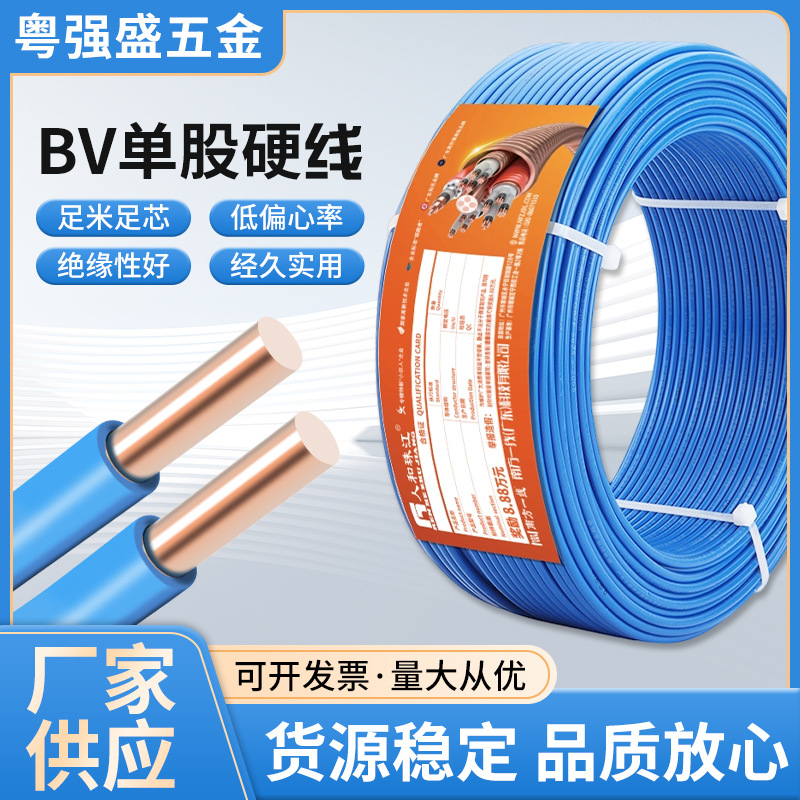 家用阻燃无氧铜电线BV单股硬线1.5/2.5/4/6/10/16平方铜芯硬电线