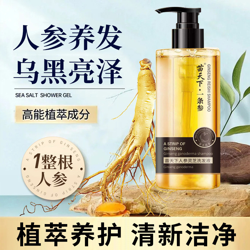 苗天下一条参人参灵芝洗发液温和清洁发草本植萃人参灵芝洗发水/