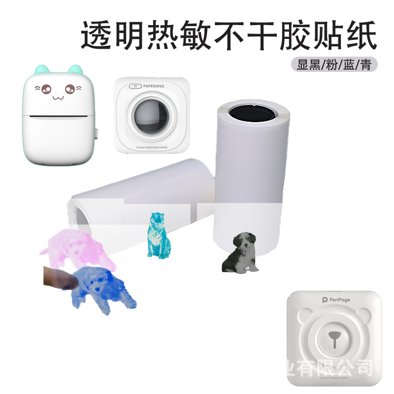 57x25透明显色不干胶打印纸喵喵机57mm通用透明便利贴不留胶透明