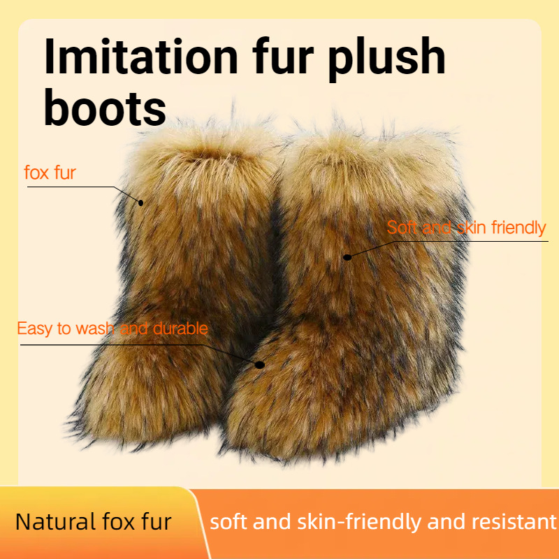 跨境仿皮草狐狸毛雪地靴冬季保暖加厚中筒靴子欧美风中帮雪地靴