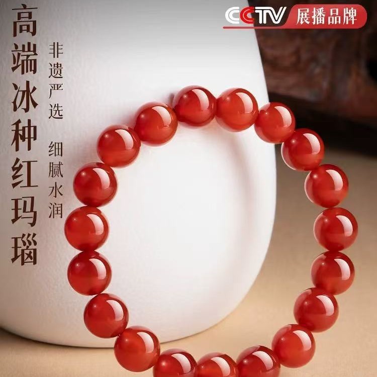 红玛瑙手链情侣本命年男女款红玛瑙时尚圆珠手串饰品天然红玛瑙