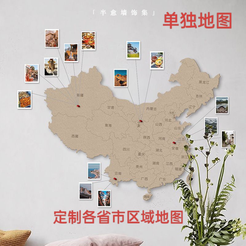 网红毛毡中国地图旅行版照片墙毛毡地图足记展示墙挂装饰地图毛毡