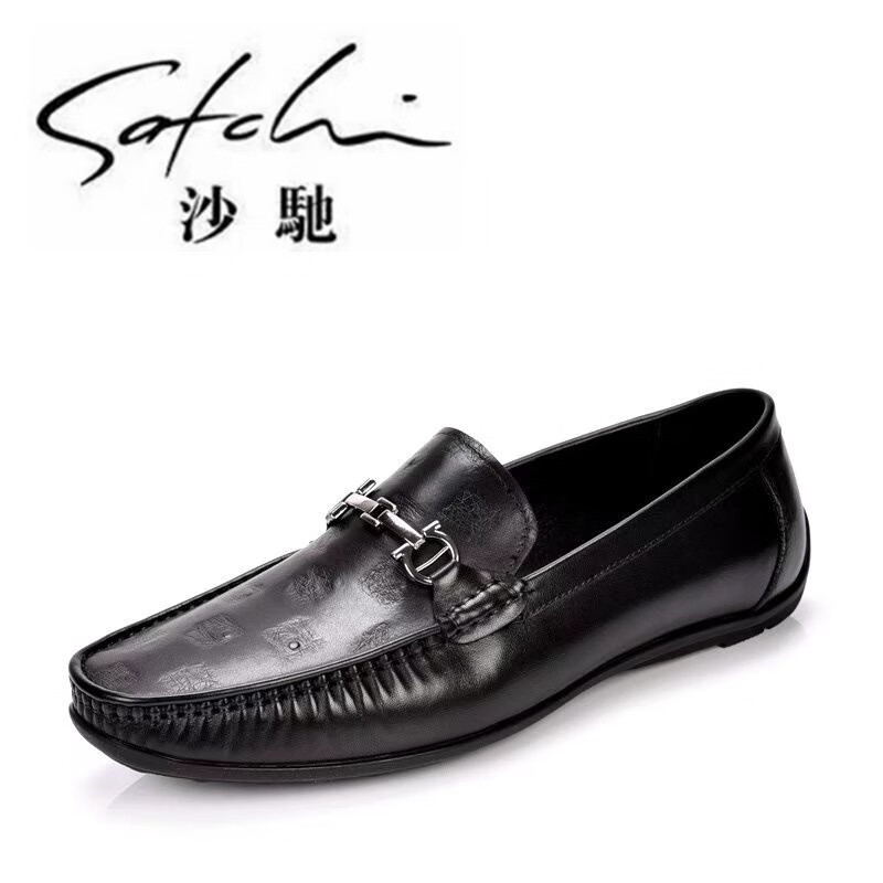 沙驰软牛皮商务休闲皮鞋男士时尚驾车鞋软底软面真皮一脚蹬豆豆鞋