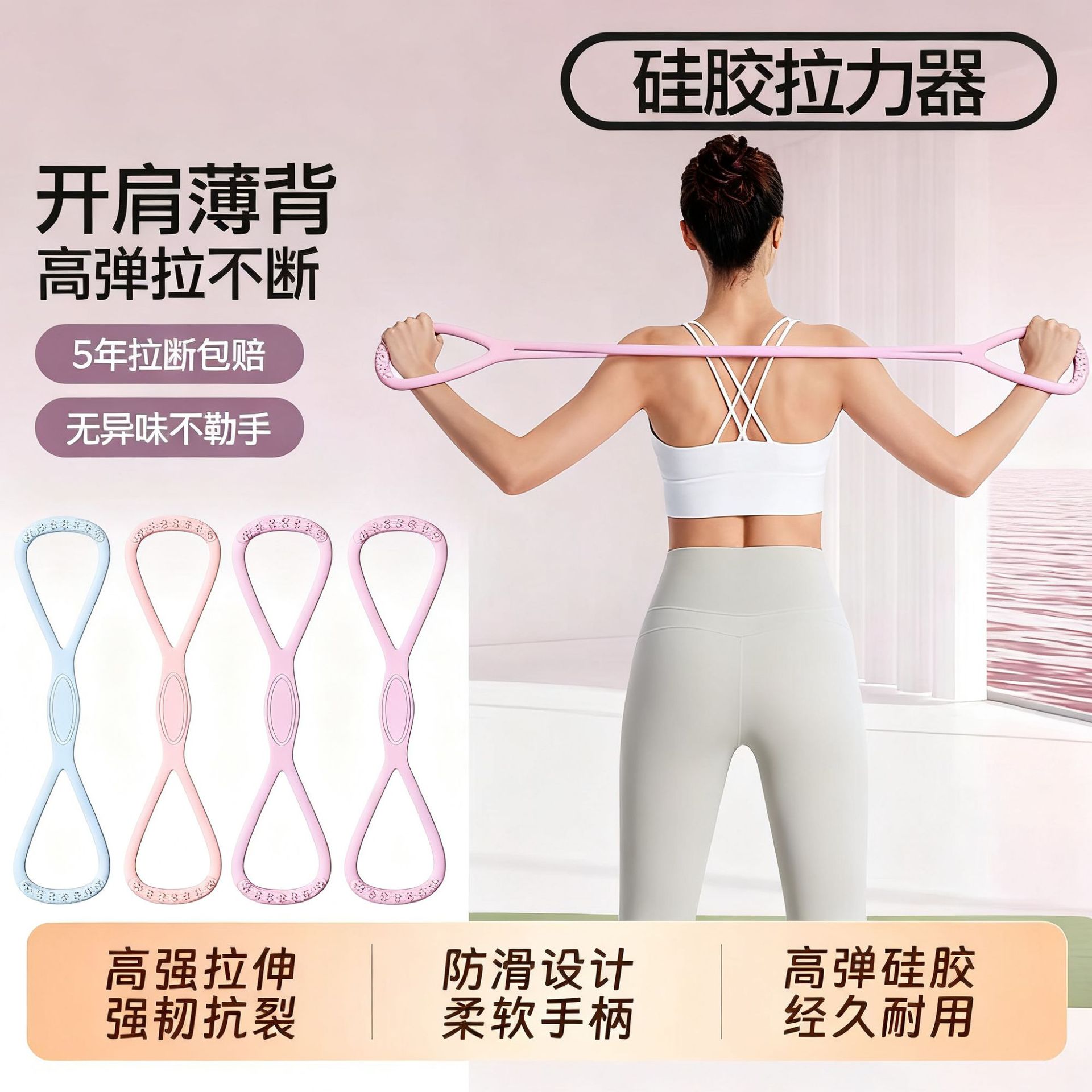 -               8字拉力器女开背练背拉背神器美背拉伸弹力带家用瑜伽拉力带