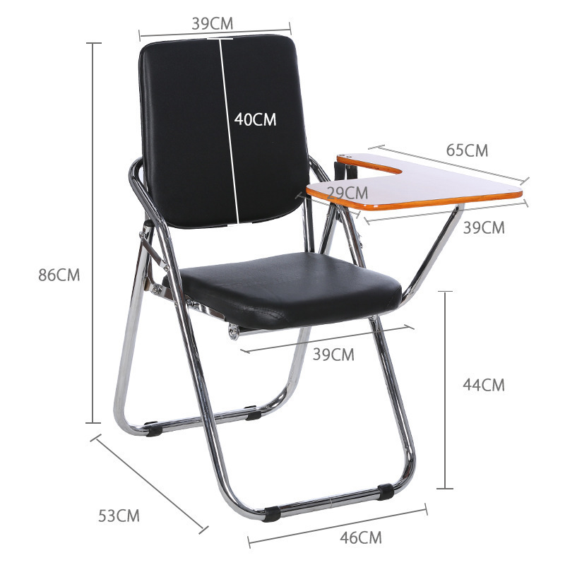 外贸跨境简约靠背折叠椅便携记者椅带桌板写字板会议培训写字椅子