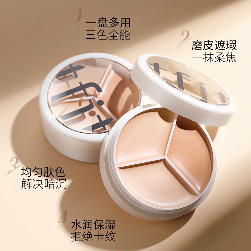 遮瑕膏三色盘奶酪遮瑕膏泪沟黑眼圈脸部斑点痘印瑕疵干油皮KATO遮