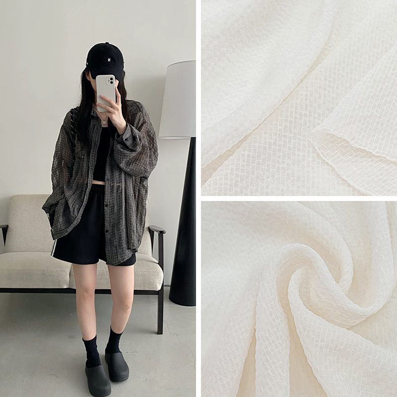 现货 格子欧根纱面料 褶皱肌理感女装汉服服饰裙子小清晰公主裙