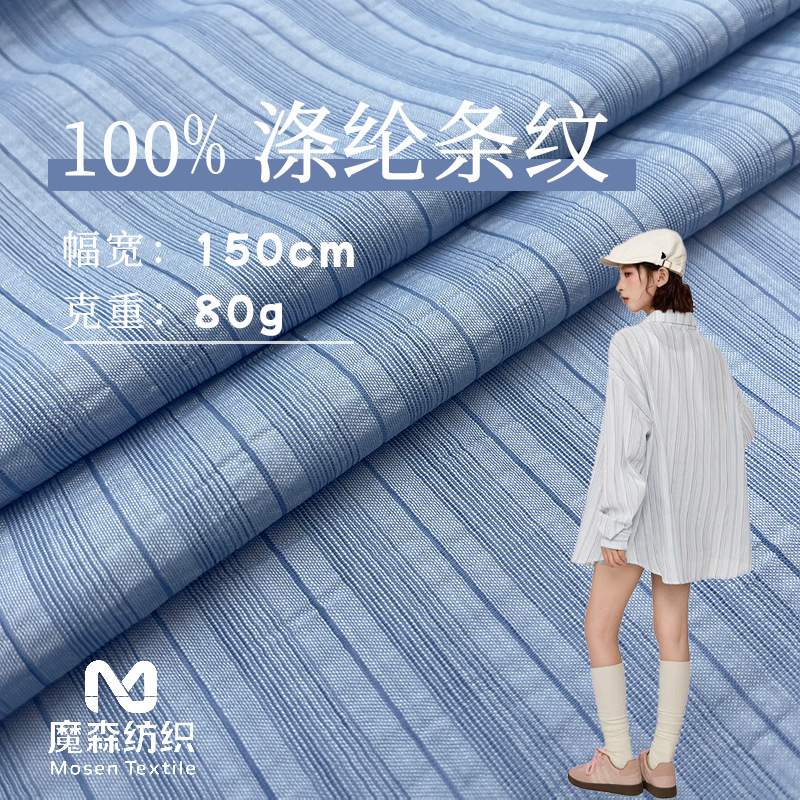 现货直销 涤棉混纺条纹布料 提花柔软透气轻薄衬衫裙子童装面料
