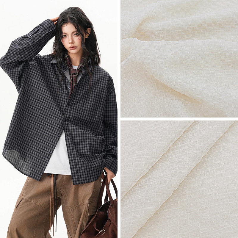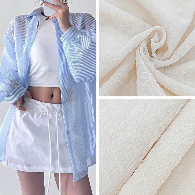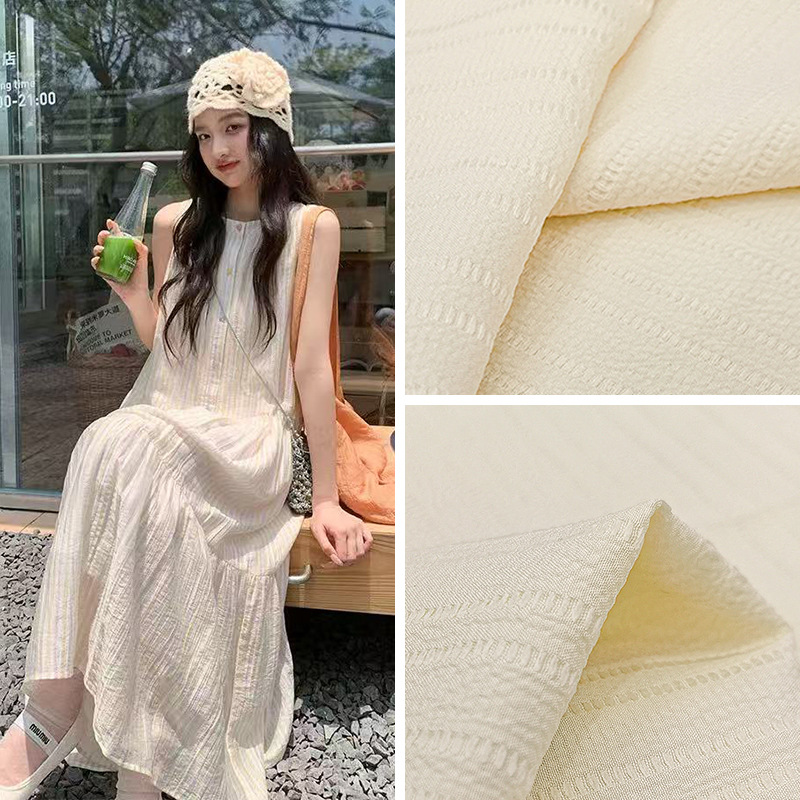 锦纶人棉混纺面料 亲肤透气立体肌理感 女装裙子衬衫布料现货批发