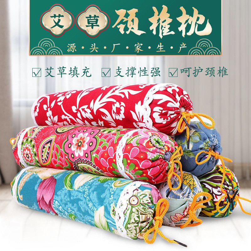 艾草枕头多色颈椎枕可拆卸专用睡眠枕圆柱富贵包护颈椎艾灸枕批发