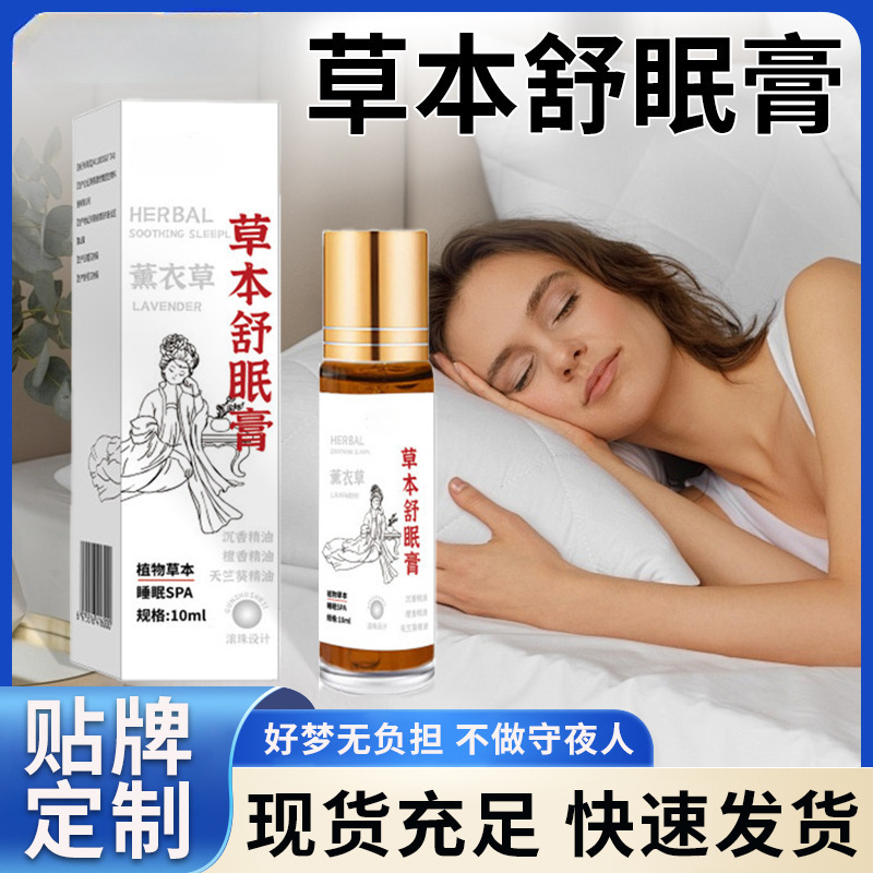 抖音同款草本舒眠膏薰衣草沉香晚安舒眠精油滚珠睡眠香膏批发代发