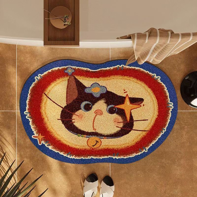 卡通可爱小猫软硅藻泥浴室地垫吸水速干防滑卫生间门毯厕所脚踩垫