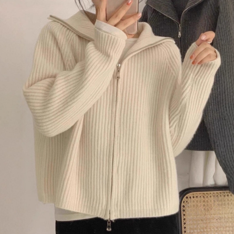 女式外套2025秋冬新款时尚宽松针织开衫女软糯设计感拉链毛衣外套
