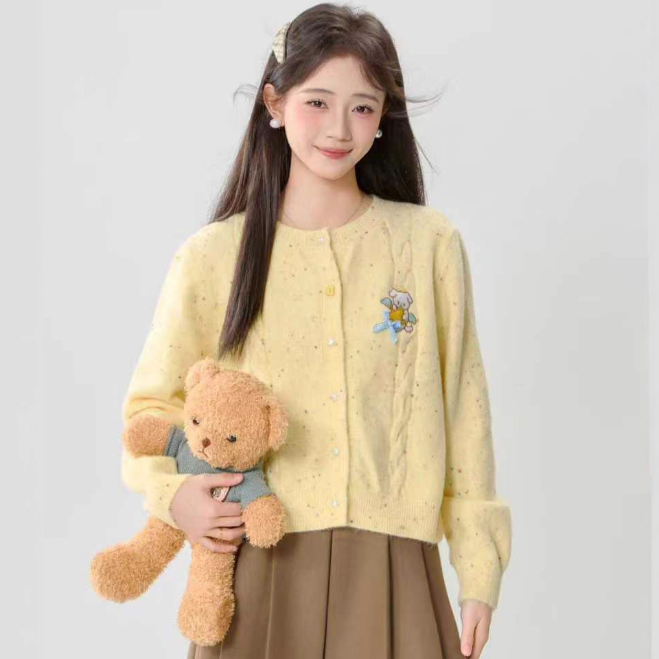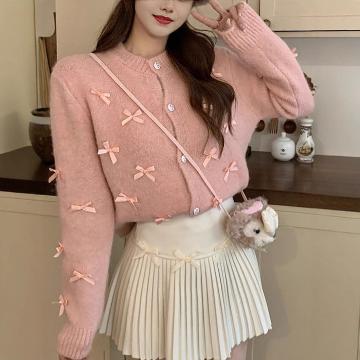 天使小狗2025秋冬新款韩系刺绣蝴蝶结毛衣外套女甜美软糯针织开衫