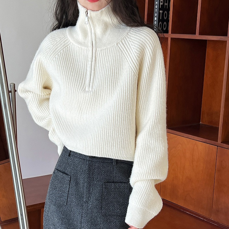 春秋季新款上衣半拉链高领高腰短款慵懒风高级感毛衣外套女针织衫