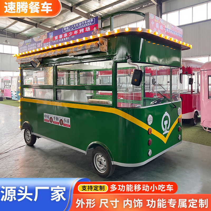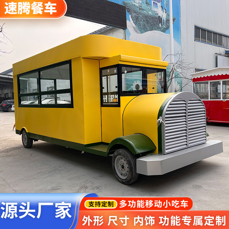 复古老爷车餐车网红美食街多功能售货小吃车移动餐车电动摆摊车