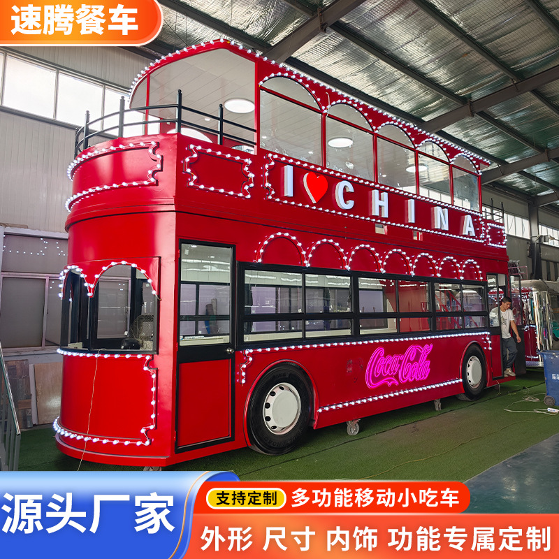 早餐夜市电动摆摊车双层巴士快餐美食流动商用高端多功能移动餐车