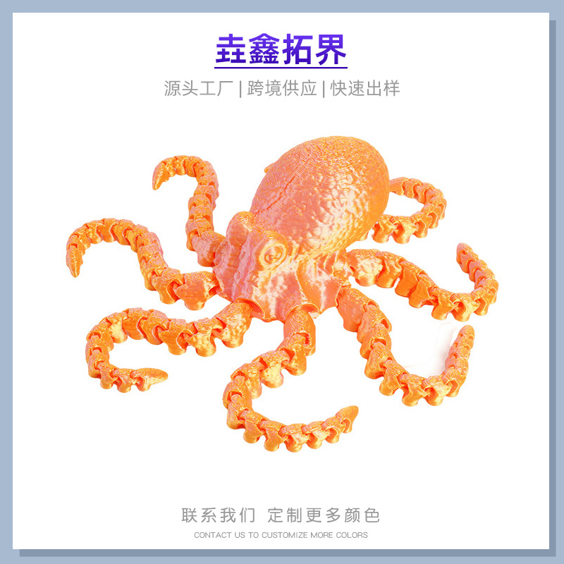 跨境3D打印玩具章鱼关节可活动鱼缸装饰乌贼小玩具3d打印手办摆件