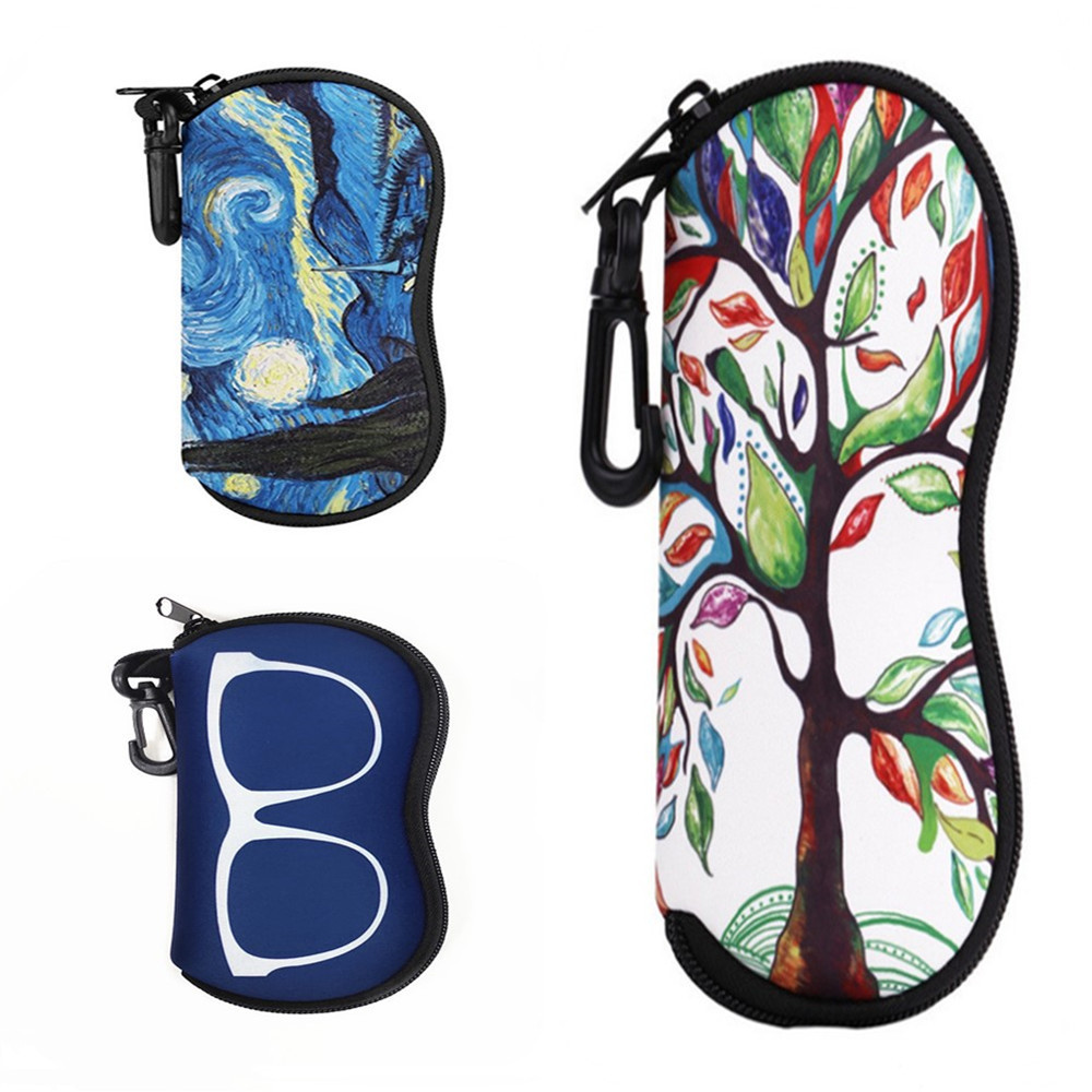 批发潜水料眼镜包防摔挂钩黑色太阳眼镜袋时尚印花眼睛盒