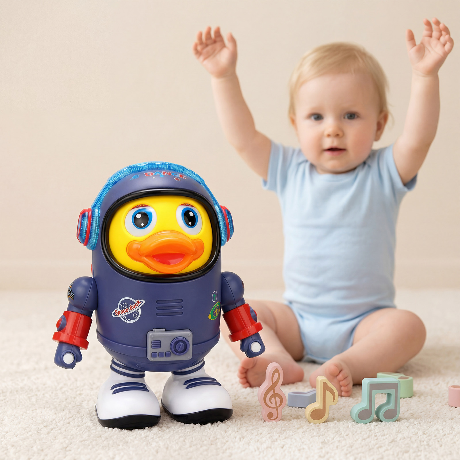 太空鸭电动益智玩具 声光互动早教探索启蒙轻便设计趣味解闷玩具