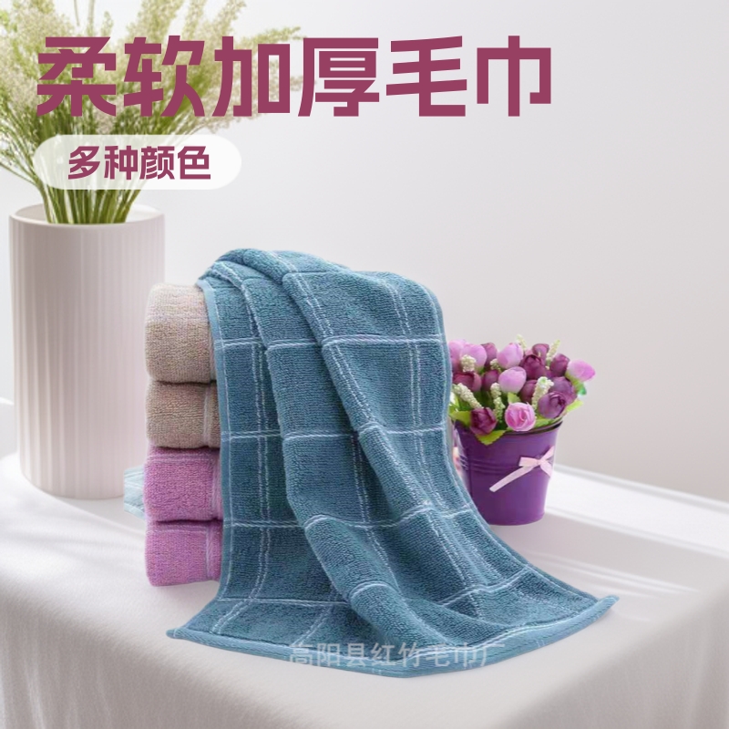 毛巾厂家批发棉质加厚吸水丝带方格毛巾礼品商超日用回礼刺绣logo