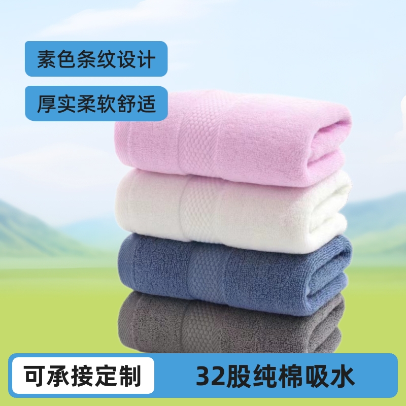 纯棉毛巾32股吸水厚实素色家用成人条纹厂家批发采购全棉礼品LOGO