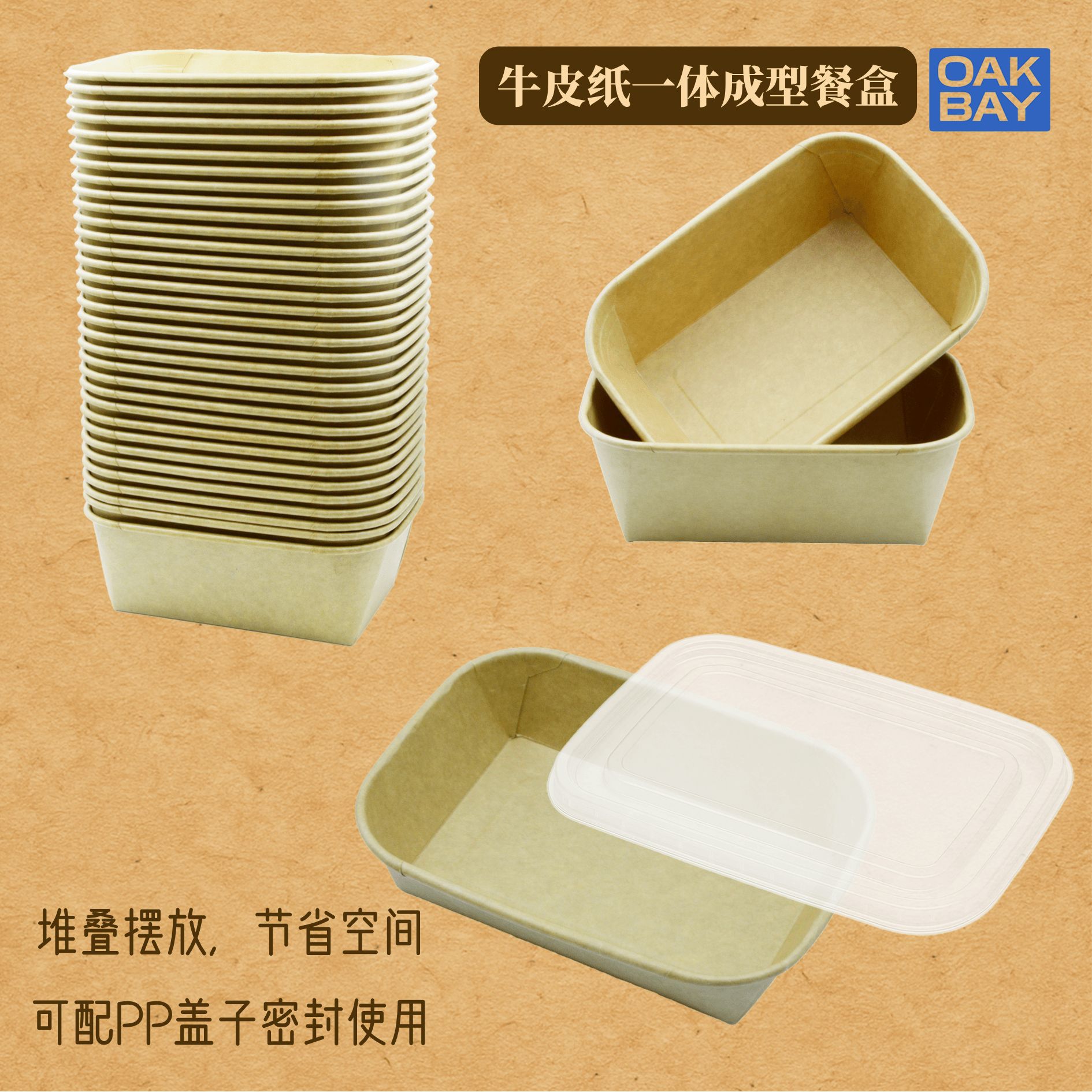 一体成型牛皮纸餐盒 沙拉盒 防油防漏 环保可降解外卖打包盒