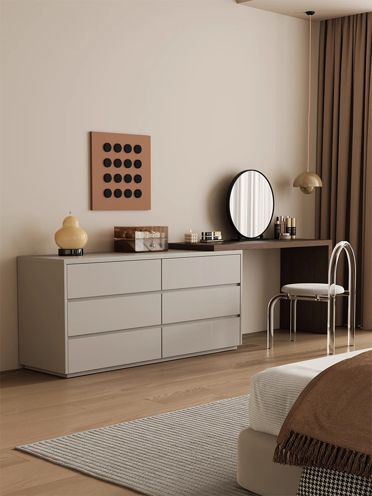 实木卧室梳妆台简约现代床尾斗柜一体2025新款轻奢奶油风化妆桌子
