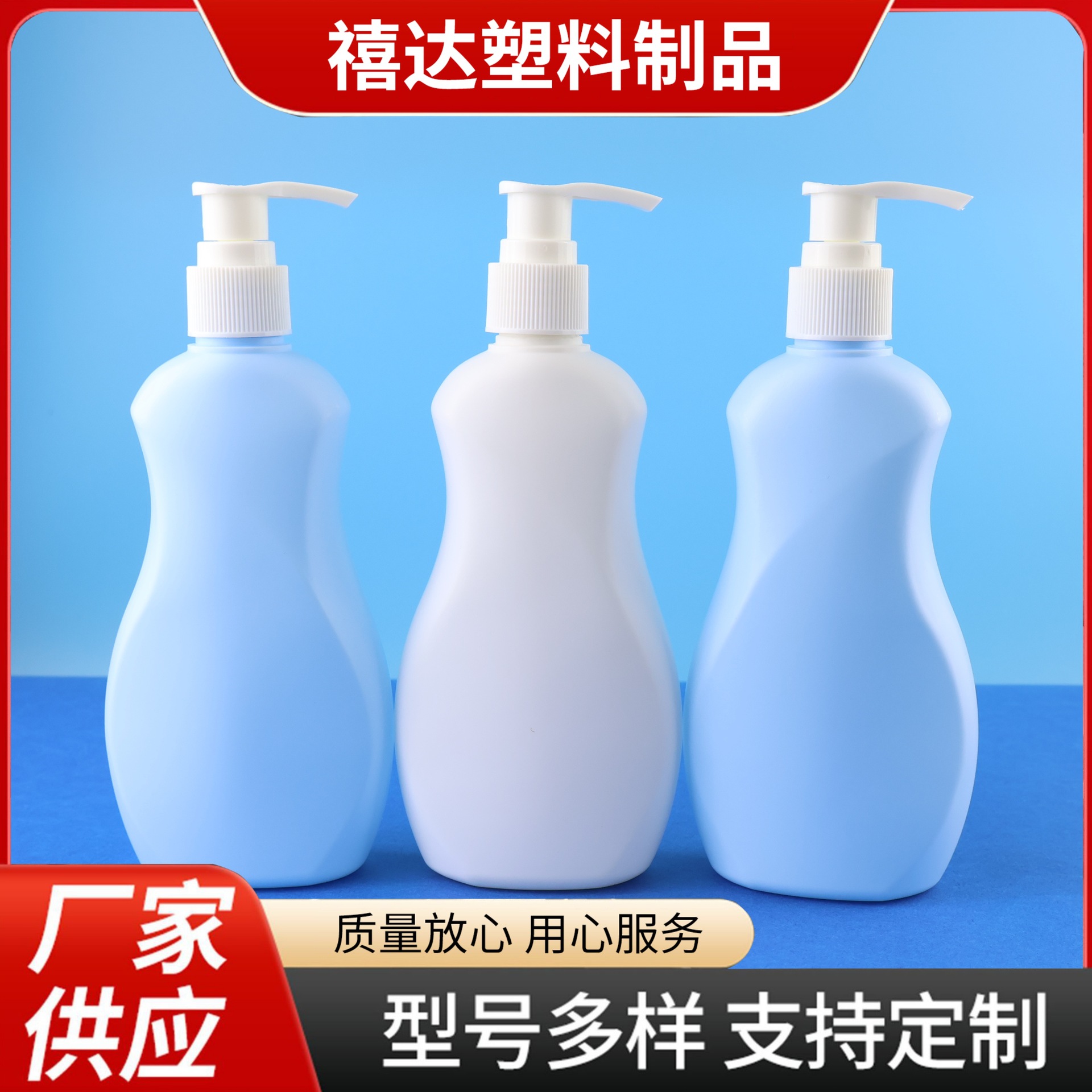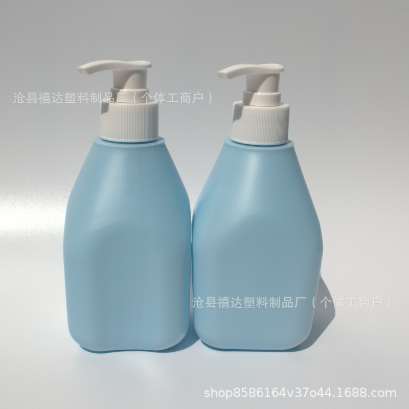 300ml蓝色四方锥形乳液瓶沐浴露洗发水瓶HDPE塑料包装瓶