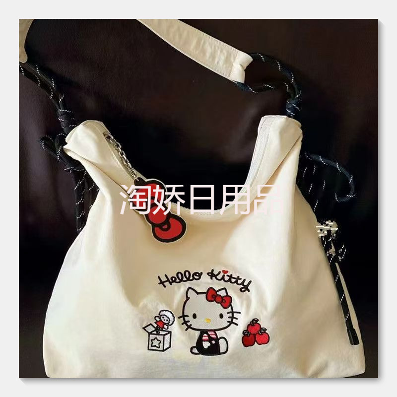 可爱卡通刺绣帆布包女2025新款大容量通勤托特包单肩斜挎包