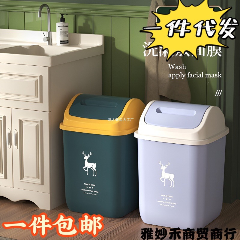 家用垃圾桶厕所卫生间客厅轻奢商用带盖卧室厨房有盖宿舍摇盖纸篓