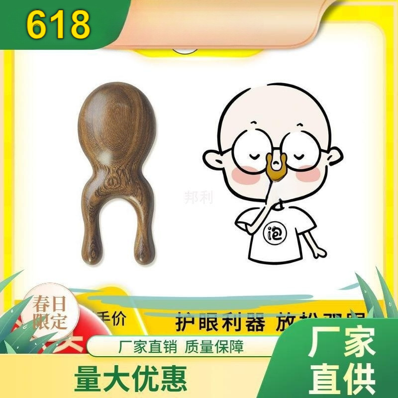小青蛙按摩梳护眼木梳子眼周实宽齿梳利器按摩檀木梳晚安小灯泡