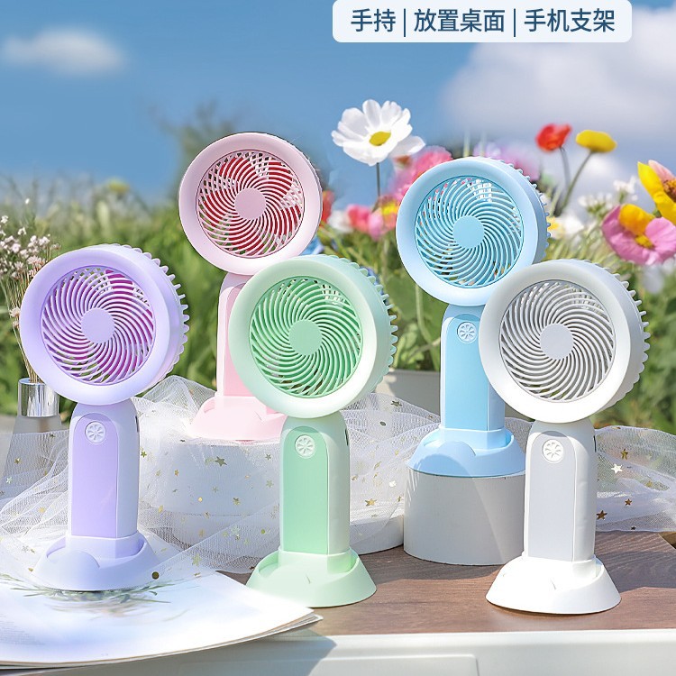 跨境桌面手持小风扇氛围感灯光迷你电风扇学生可充电便携USB风扇