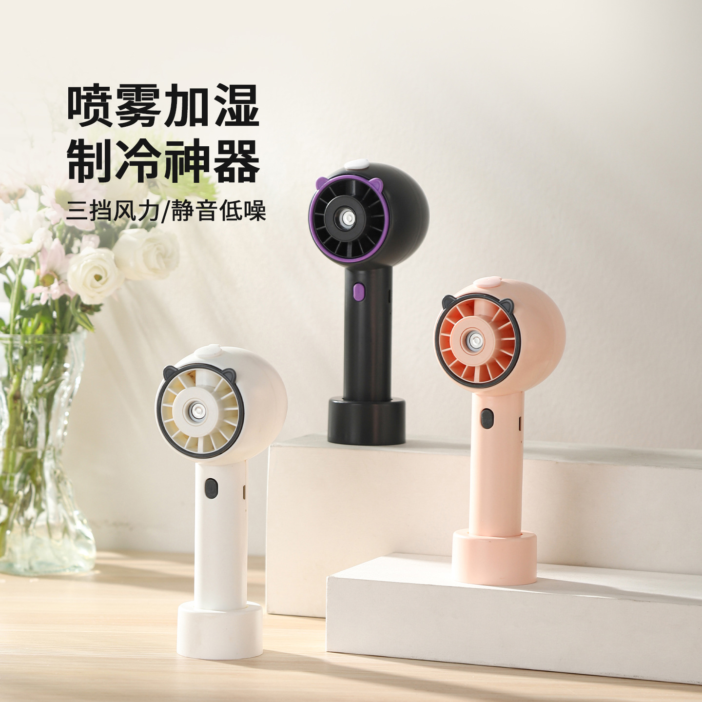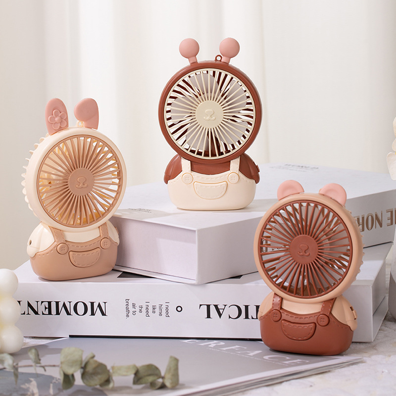 26跨境新款手持熊头喷雾小风扇便携式USB充电三档调速风扇批发直