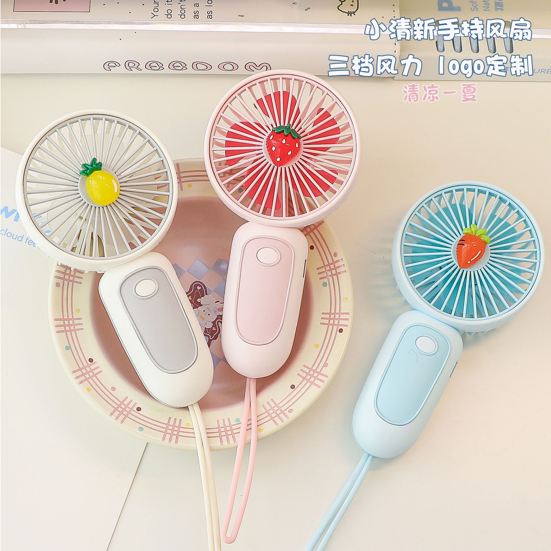 跨境夏季手持小风扇带灯迷你风扇桌面办公便携式USB小风扇便携