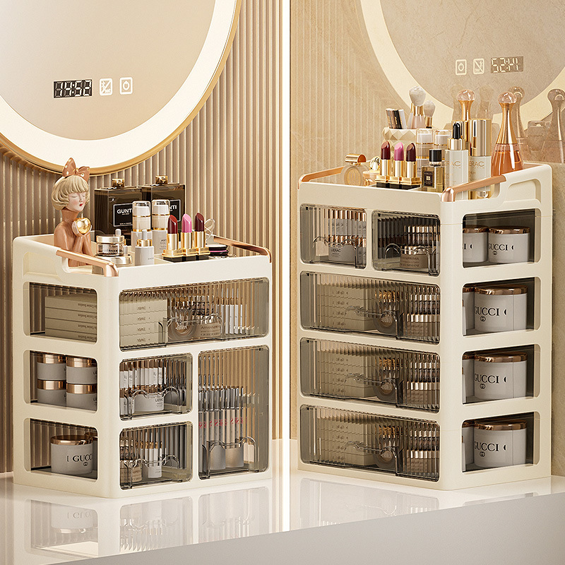 桌面化妆品抽屉式收纳柜护肤品梳妆台口红置物架多层家用收纳盒无