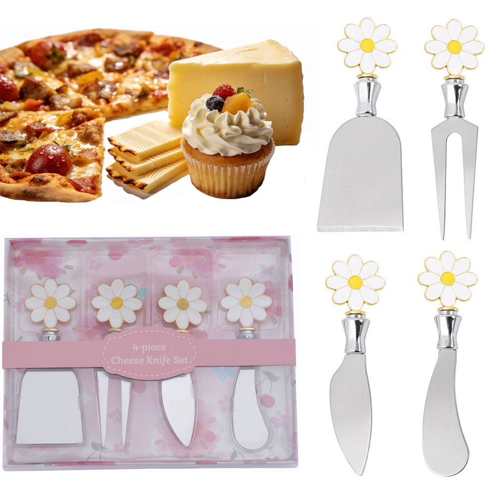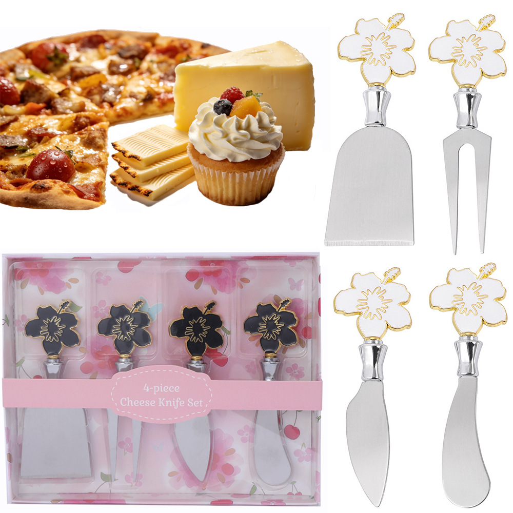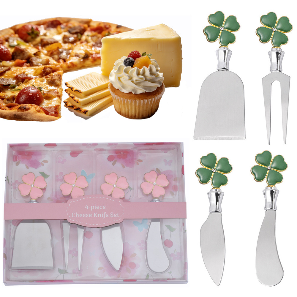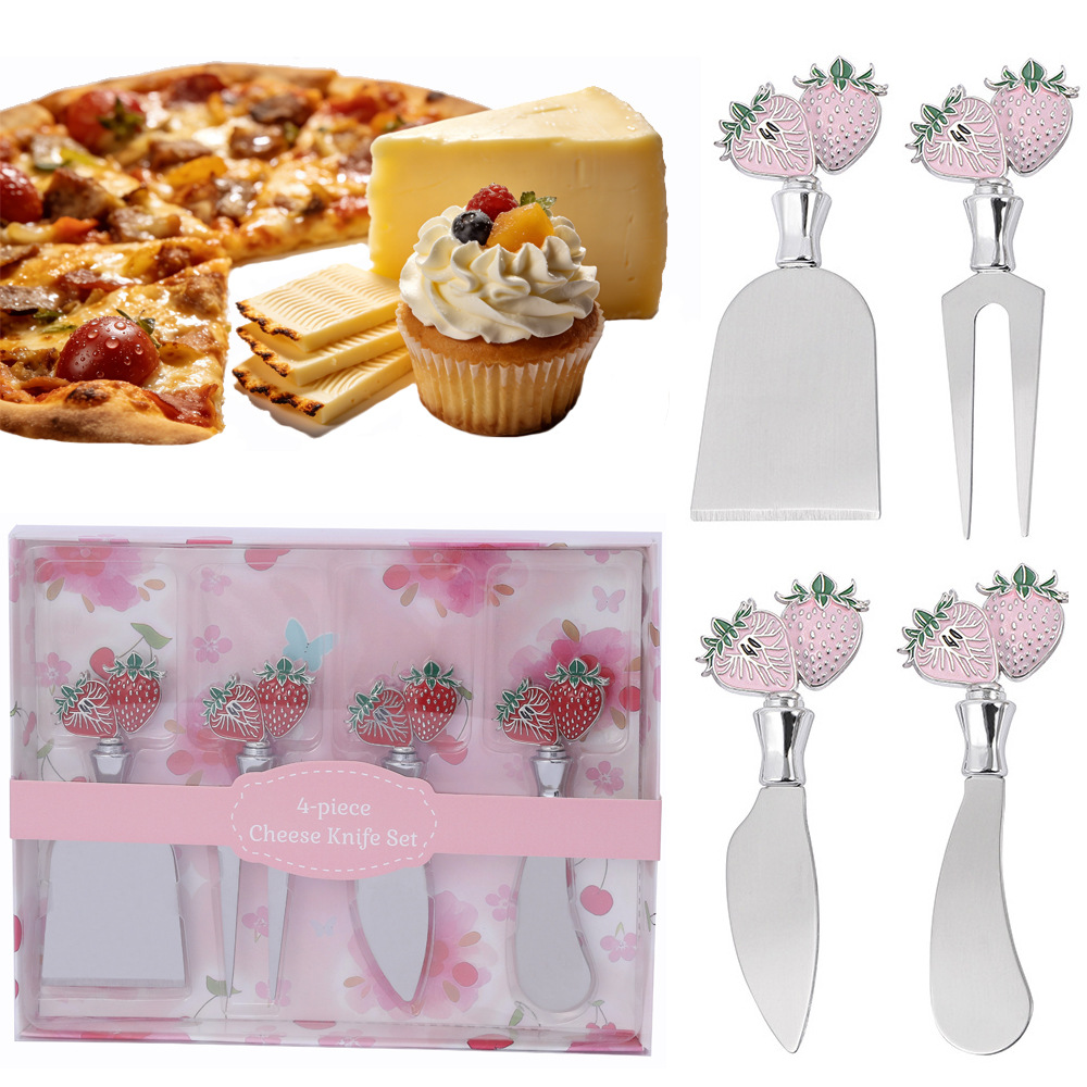 跨境现货草莓不锈钢芝士刀锌合金柄奶酪刀叉西餐刀具黄油奶油抺刀