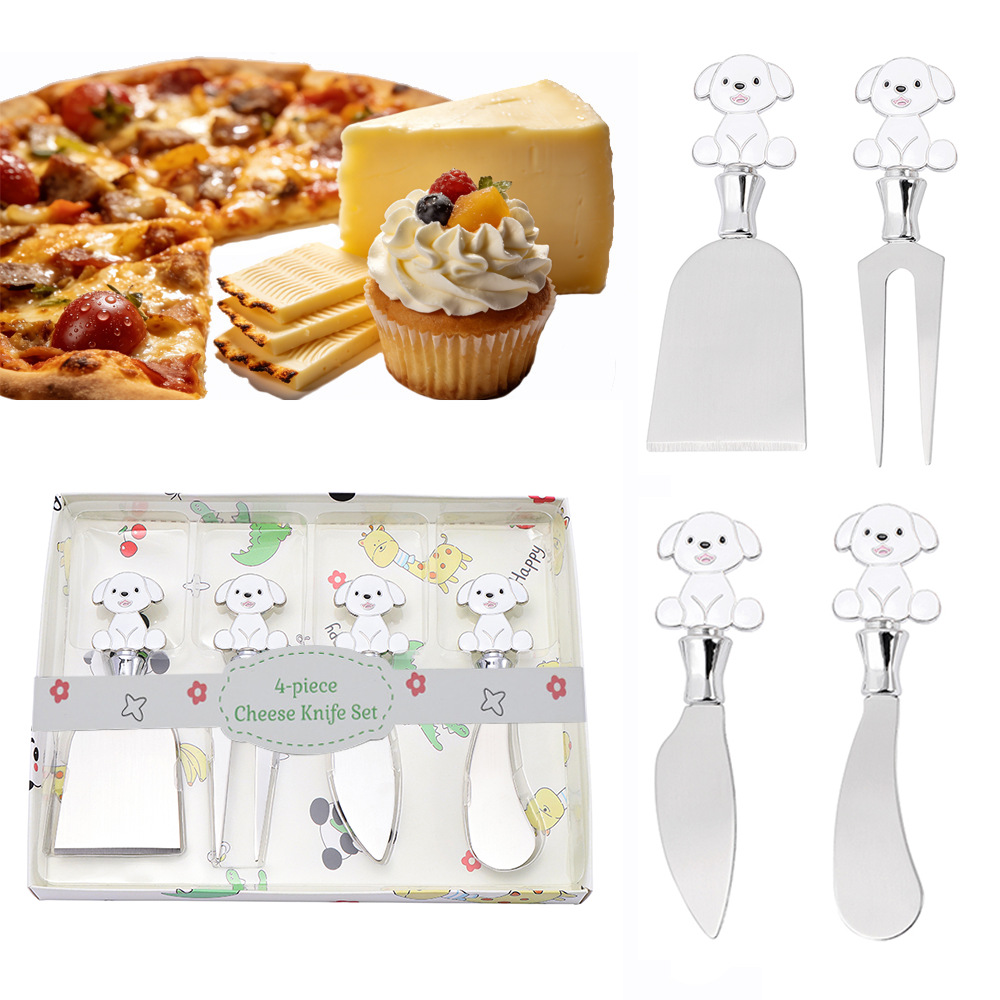 新款动物系列黄油抹刀可爱小狗烘培工具四件套不锈钢水果叉奶酪刀