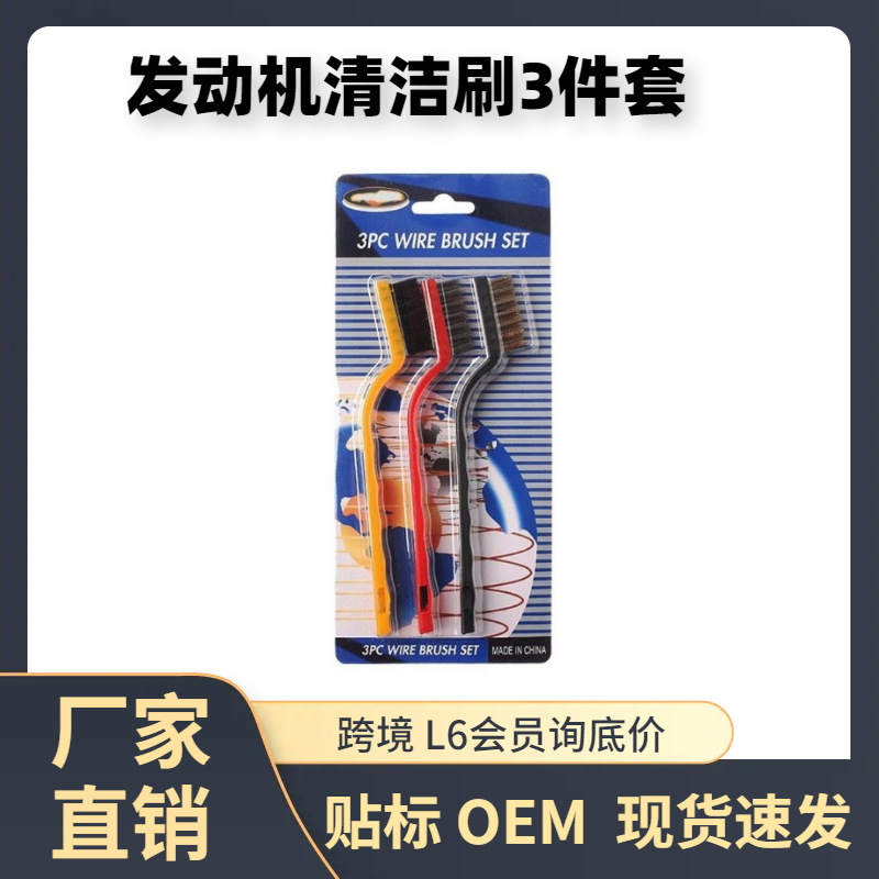 -               外贸汽发动机清洁刷三件套 钢丝刷三件套 轮毂汽车细节刷尼龙刷