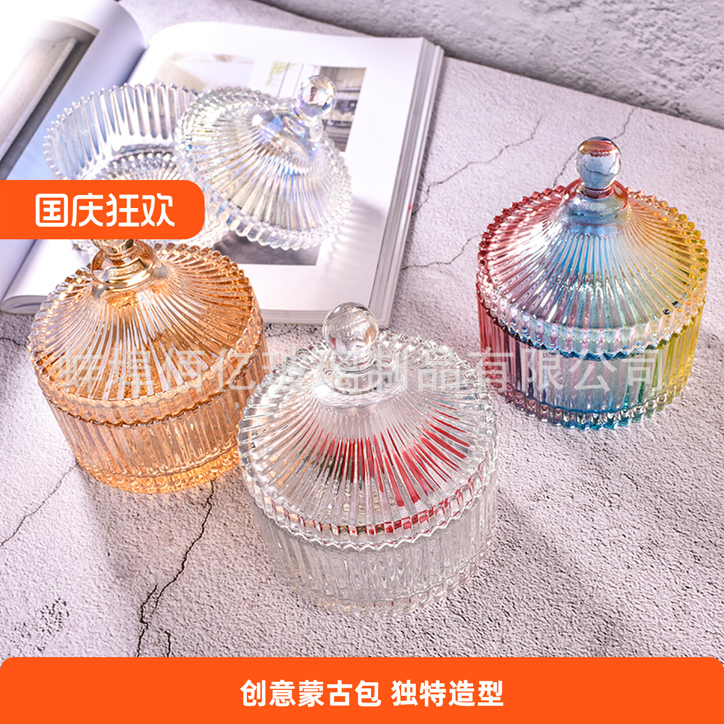 欧式彩色玻璃糖果罐带盖储存罐糖果盒创意透明储物罐蒙古包方糖罐