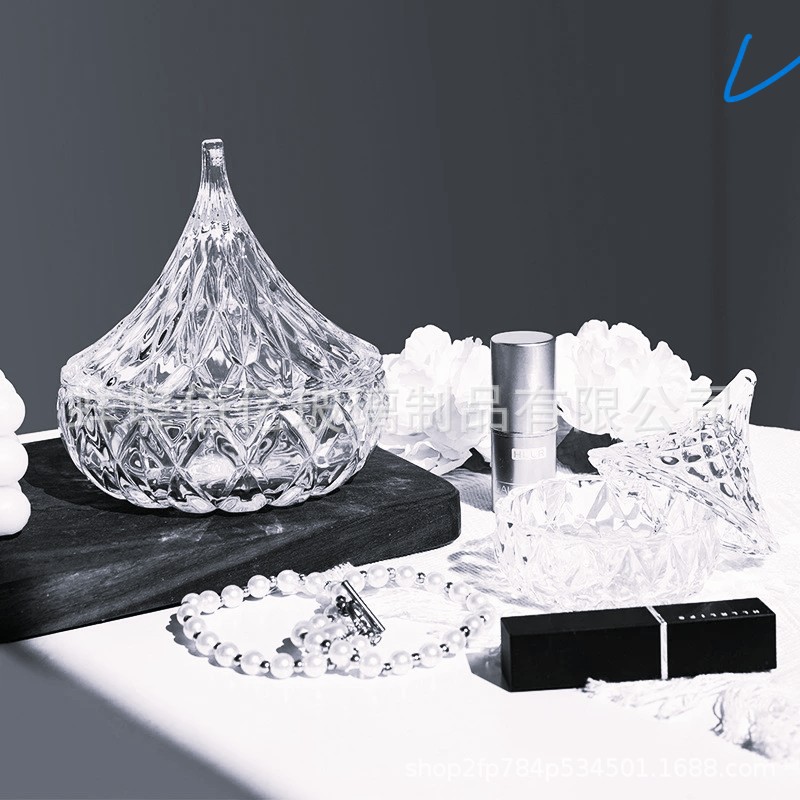 网红推荐出口欧美钻石小松子水滴玻璃糖罐首饰盒糖罐水果罐带盖