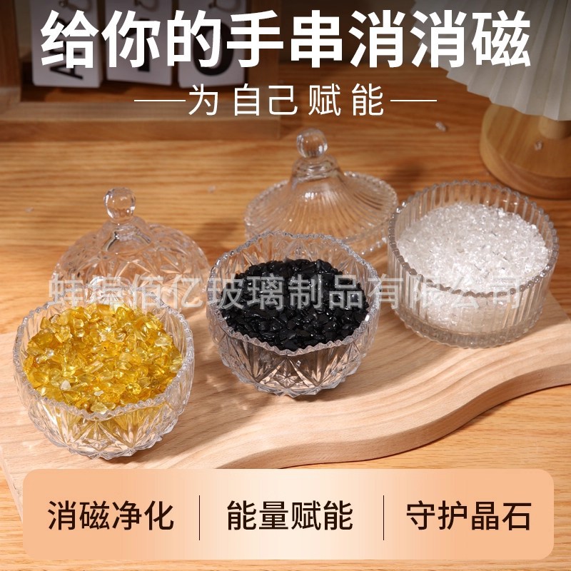 水晶消磁碗天然白水晶碎石手链手串饰品能量净化器皿收纳容器摆件