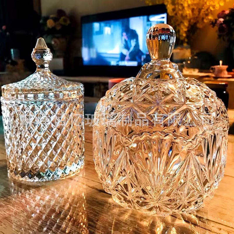 批发水晶玻璃糖果罐玻璃储蓄罐玻璃罐子带盖零食首饰收纳罐高颜值