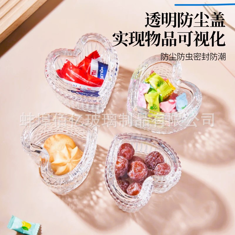 欧式浮雕复古爱心玻璃碗水果盘带盖酸奶碗收纳零食坚果盘首饰盒